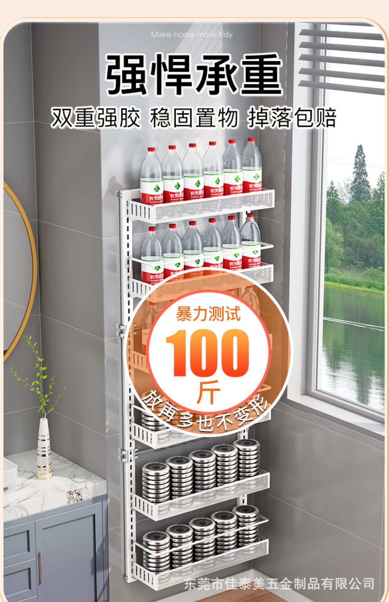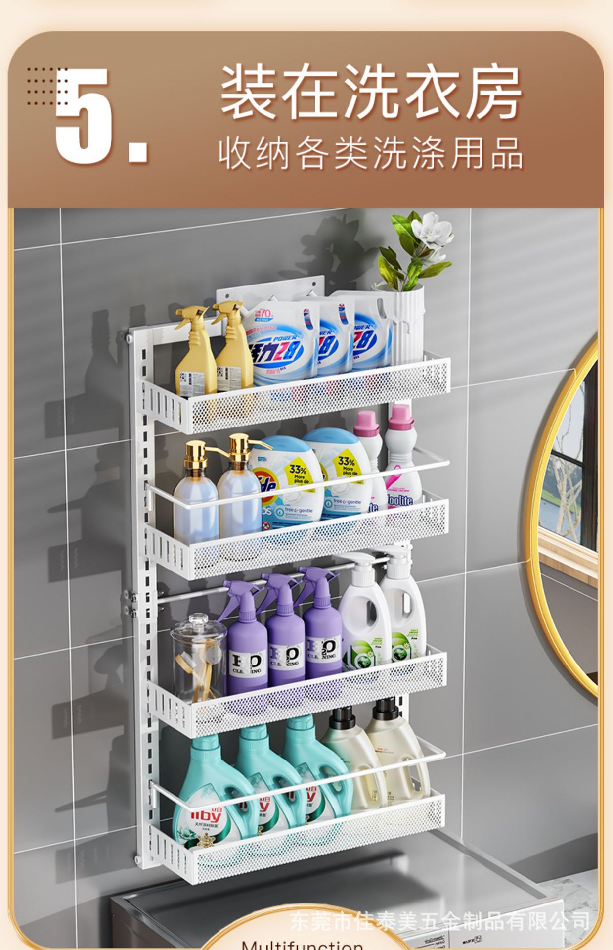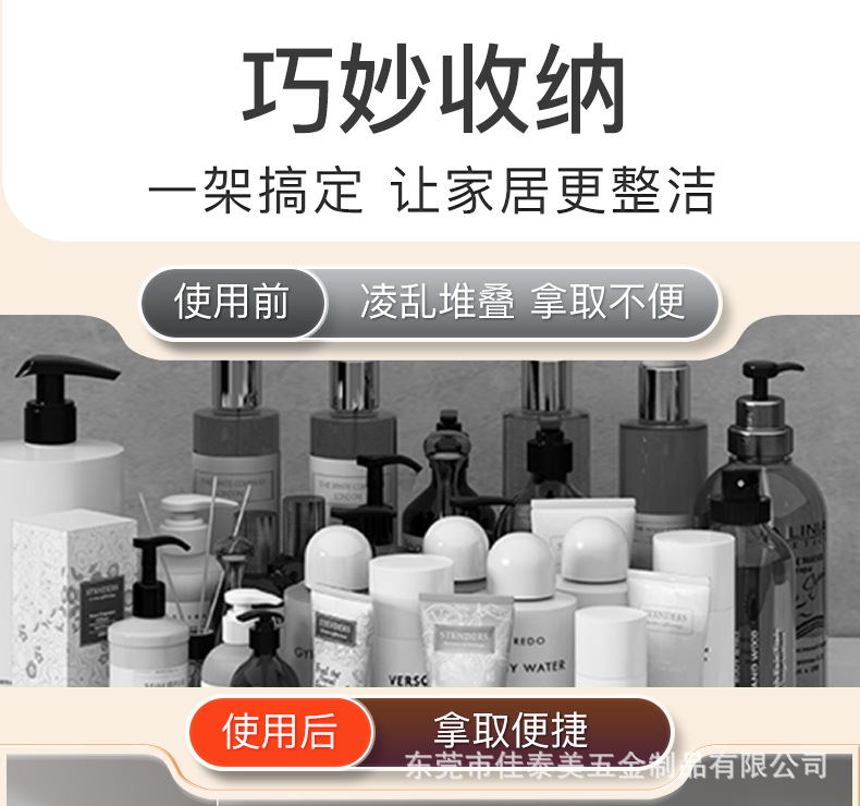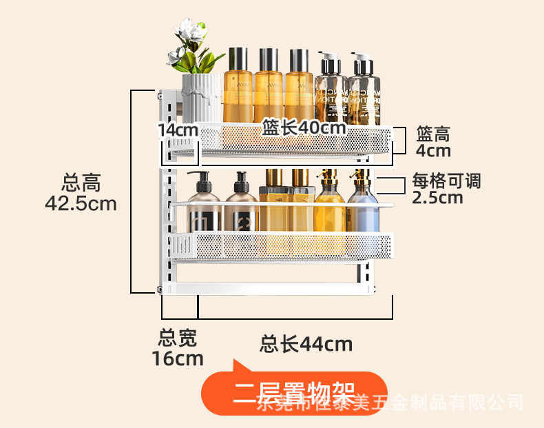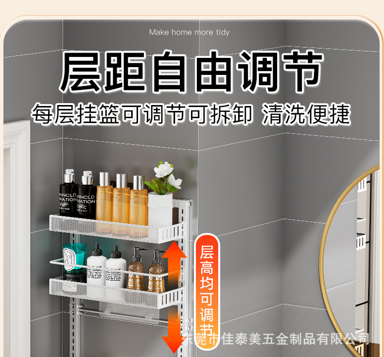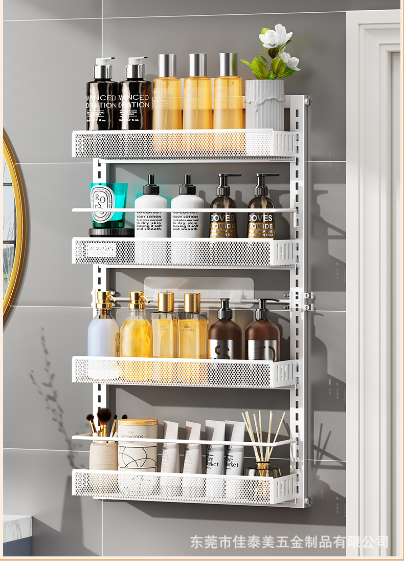 浴室の棚の壁面は穴を開けないで、多層の洗面用品の収納棚の浴室の扉の後でかごを掛けて階の整理棚を作ります。