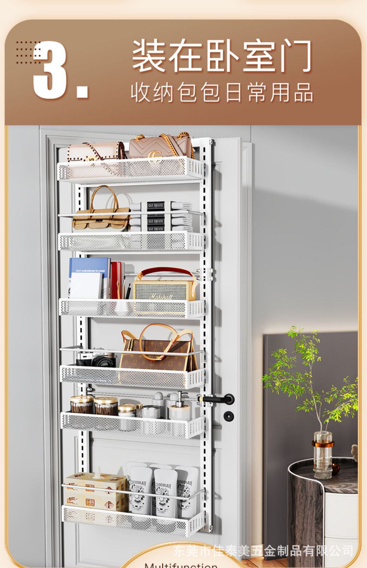 ドアの後ろに穴を開けずに設置できる家庭用収納ラック、ドアの後ろに吊るせるバスケット、壁掛け式、吊り下げ式、ドアの隙間を有効に利用できる整理ラック