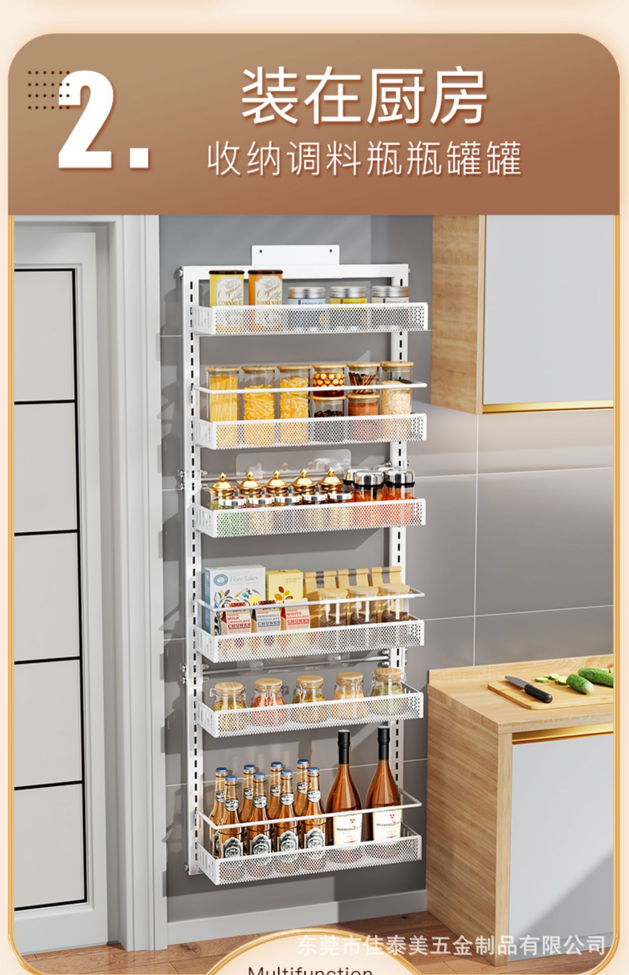 台所の階層的な棚のドアの後ろにバスケットを掛けて穴を開けない家庭用多層吊り式冷蔵庫のドアの後ろに棚を掛けて収納する