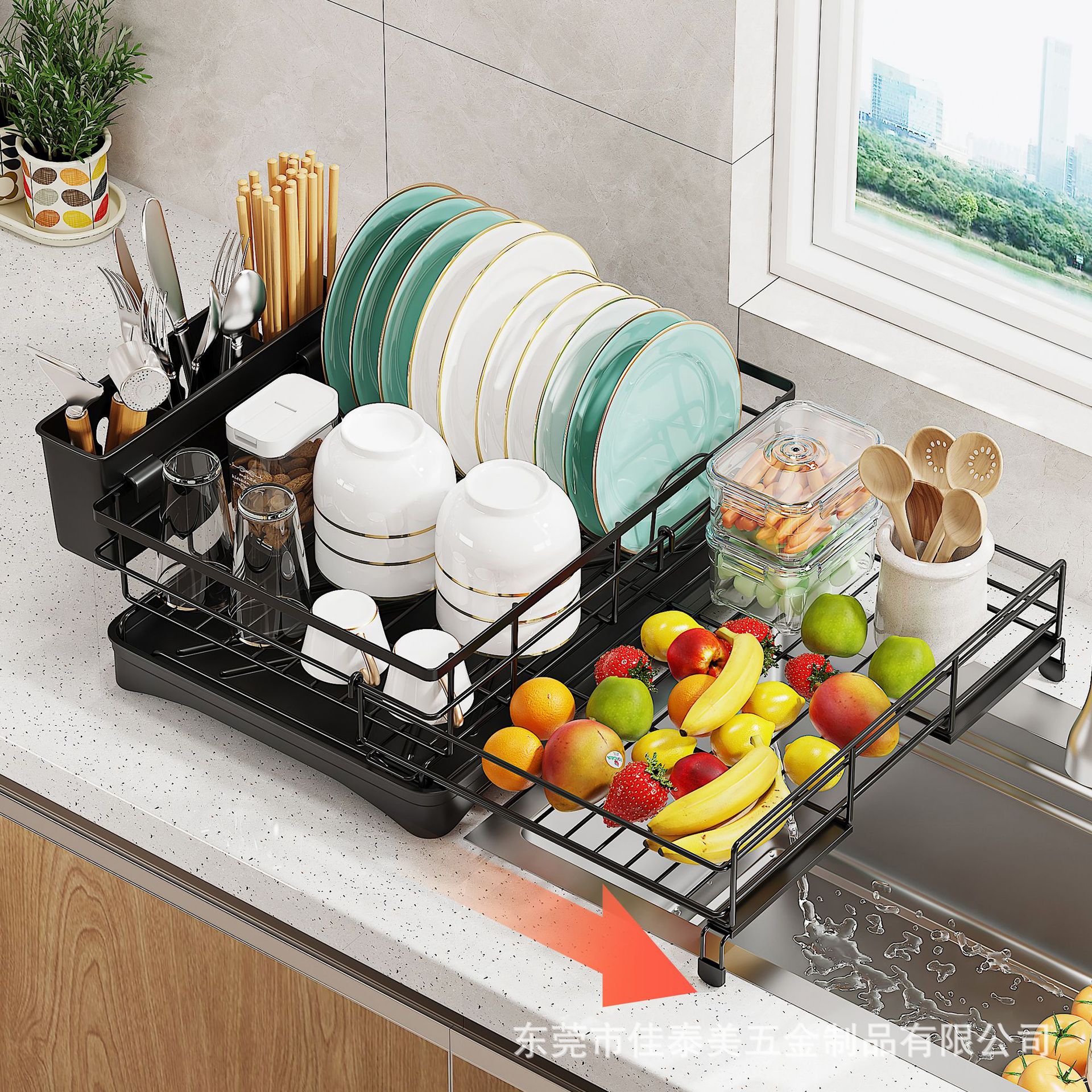 台所の水切り食器棚家庭用食器コップ収納棚テーブルの多機能伸縮可能な食器棚