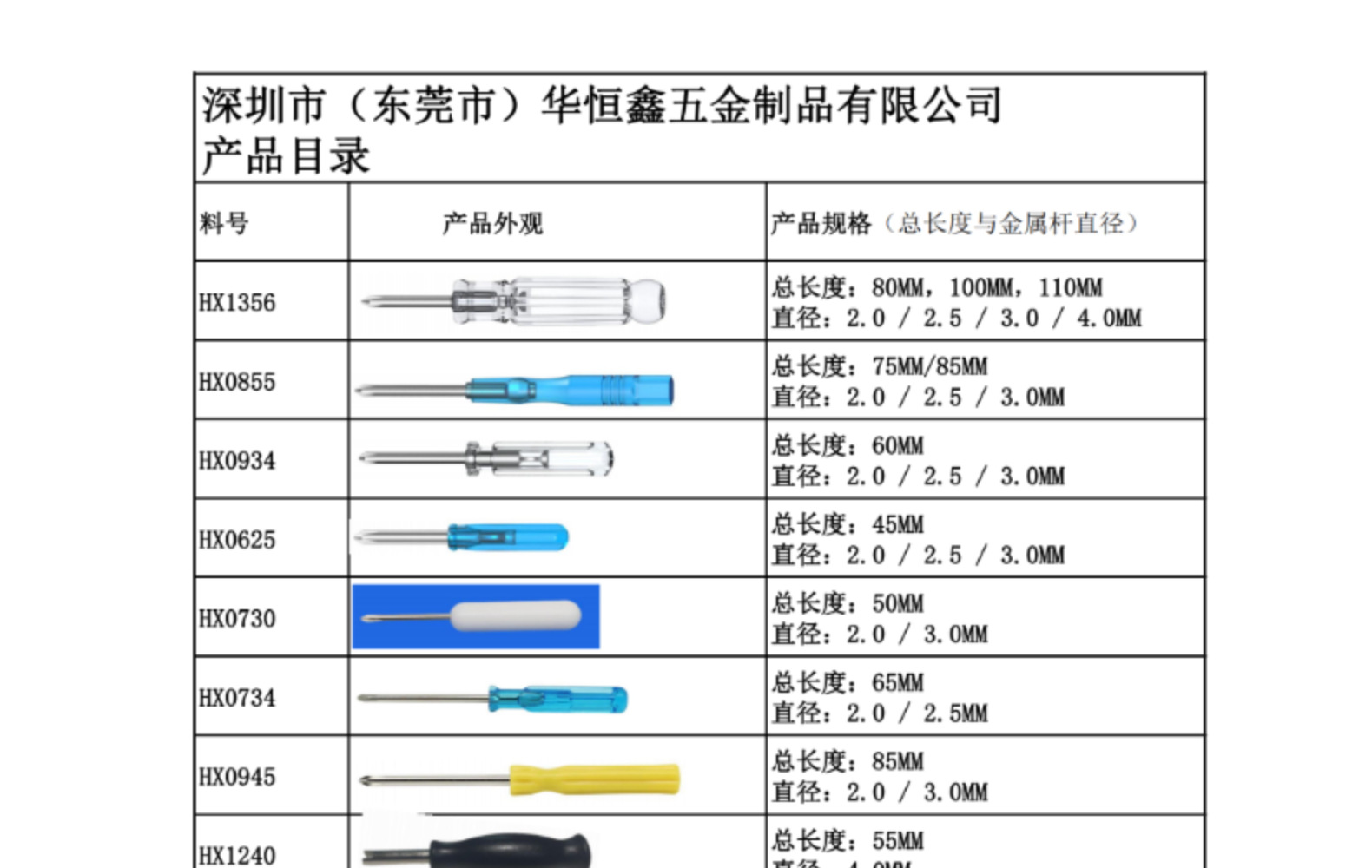 Huahengxin Dongguan Factory は、さまざまな環境に優しい高硬度のクロス型ミニドライバーと小型ドライバーを生産する専門メーカーです。