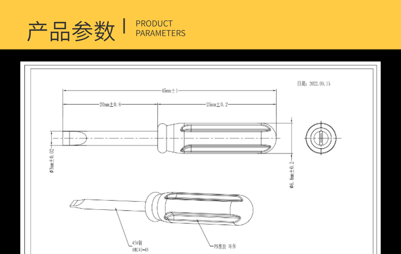 東莞メーカーは環境保護高炭素鋼透明青3.0*45mm平口一字小ドライバーを供給している