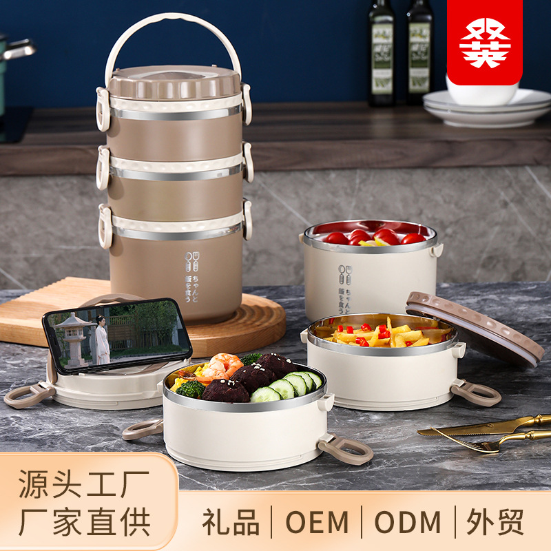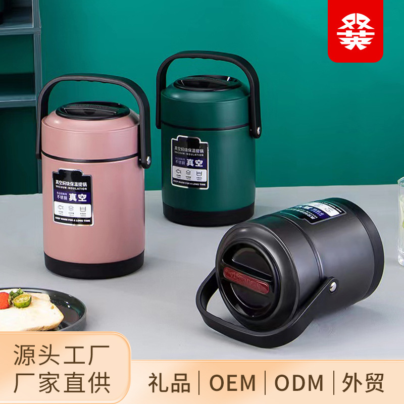 304不锈钢真空保温提锅大容量学生便携保温桶饭盒多层保温提桶