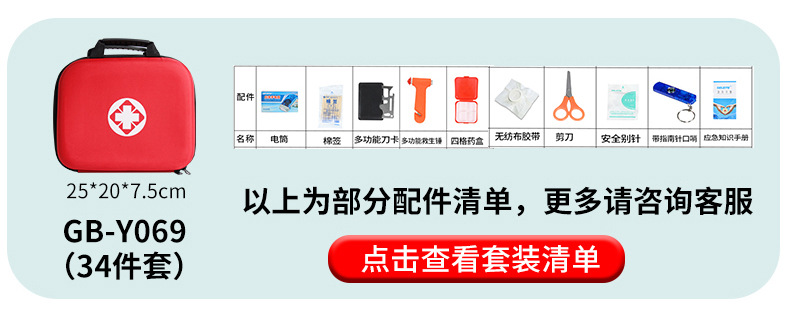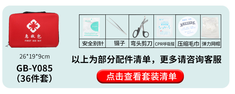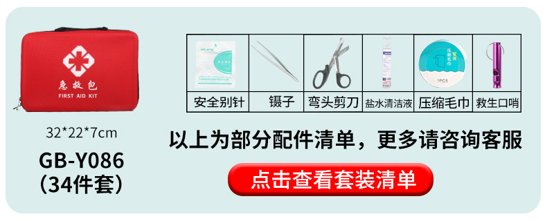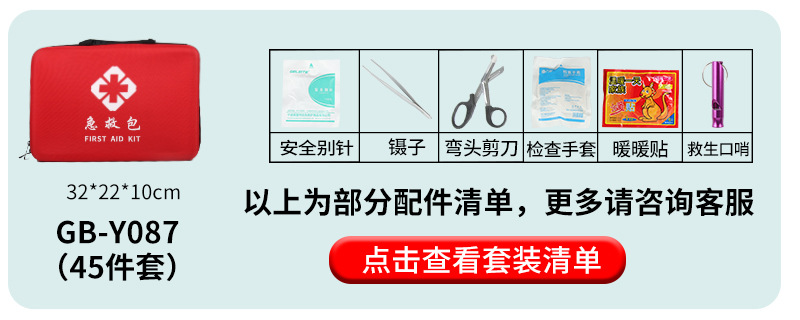 さまざまな国境を越えた家庭用救急セット、ポータブル緊急救助キット、外国貿易英語屋外車載緊急キット