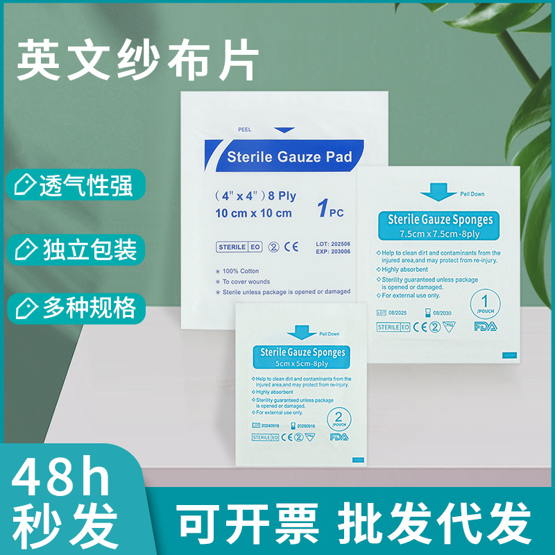 多規格英語ガーゼ片は国境を越えた中性ガーゼ片5*5cm使い捨てガーゼ片を独立して装着する