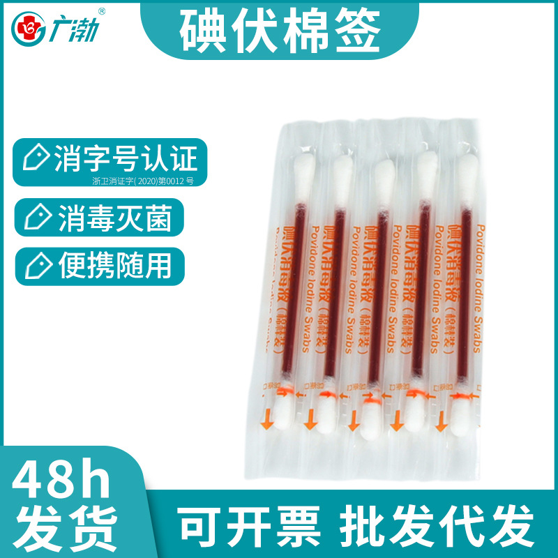一次双頭性ヨウ素ボルト綿棒卸売り携帯独立装消毒綿棒ばら積工場出荷価格卸売り
