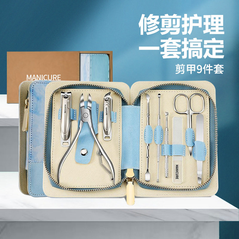 现货新款指甲刀套装 9件套不锈钢家用指甲剪美甲工具套装跨境印字