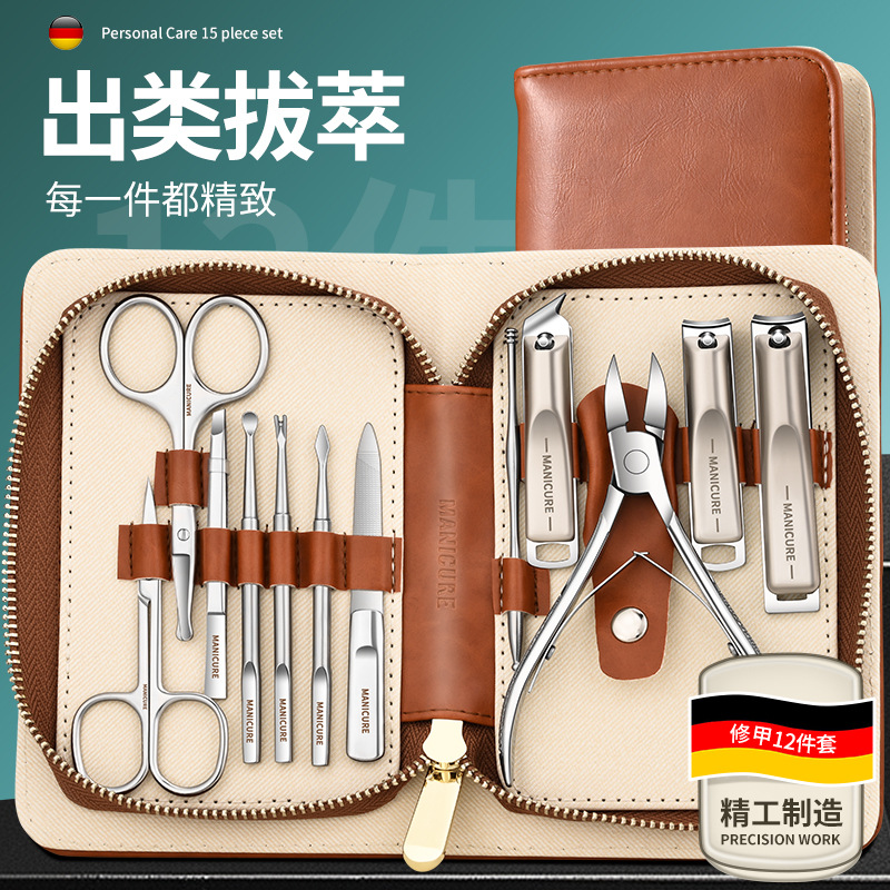 高端指甲刀套装德国男士女士指甲剪修脚刀工具13件套修甲套装