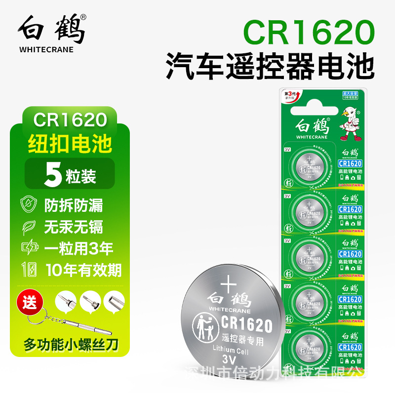 白鶴cr1620ボタン電池5粒適用自動車キーリモコン腕時計玩具マザーボード電子秤など