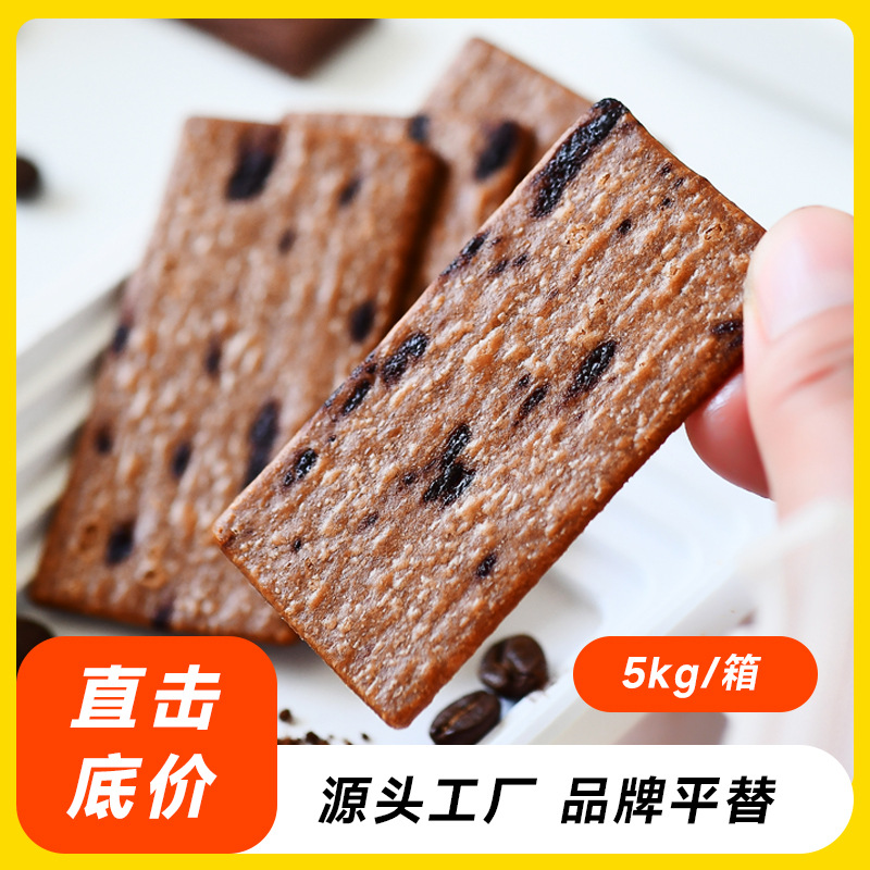 源工場のコーヒー黒巧オート麦脆い焙煎チョコレートオートミールの粗食ビスケットの代わりに間食を食べる