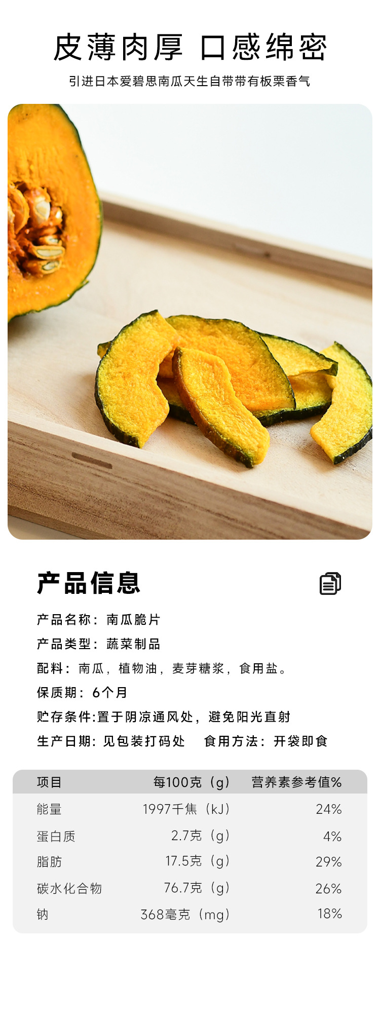 源工場のかぼちゃの乾燥したポテトチップスの香ばしいカボチャの野菜の乾燥した果物の野菜の脆い妊婦の子供の軽食はレジャーです。
