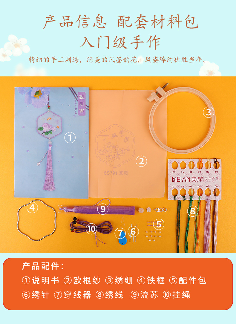 良いもの刺繍 diy 手作り自己刺繍初心者材料パッケージ古代スタイル蘇刺繍リボン刺繍製品を作る
