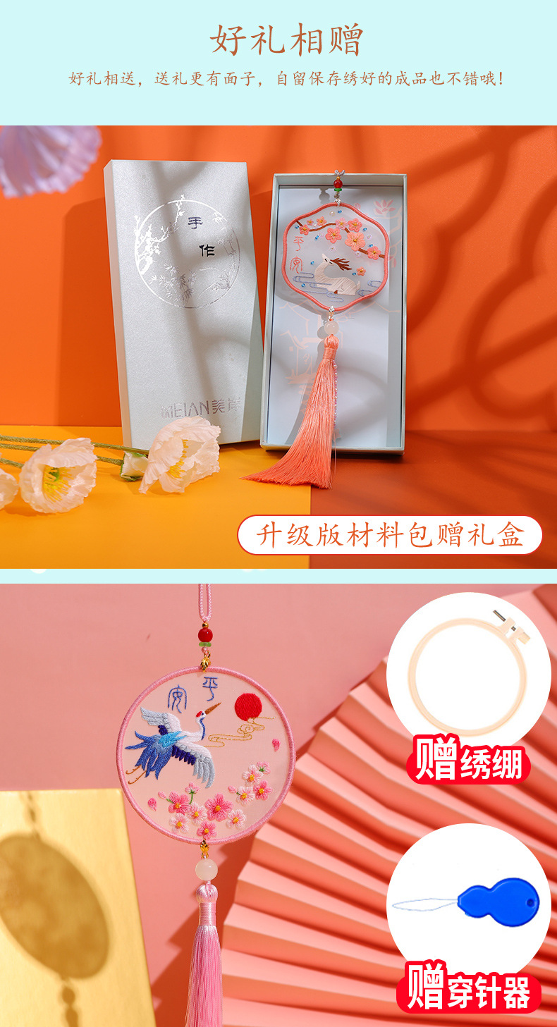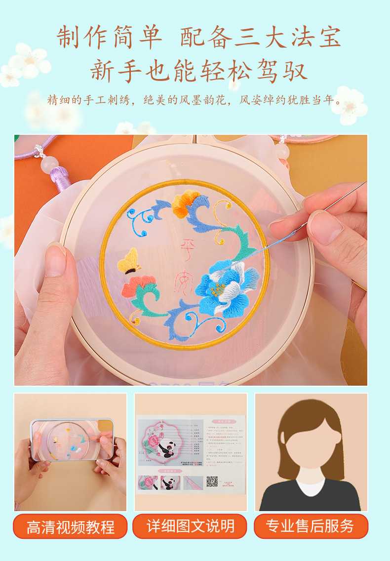 刺繍diy手作業自己刺繍初心者団扇材料バッグ刺繍扇子リボン刺繍