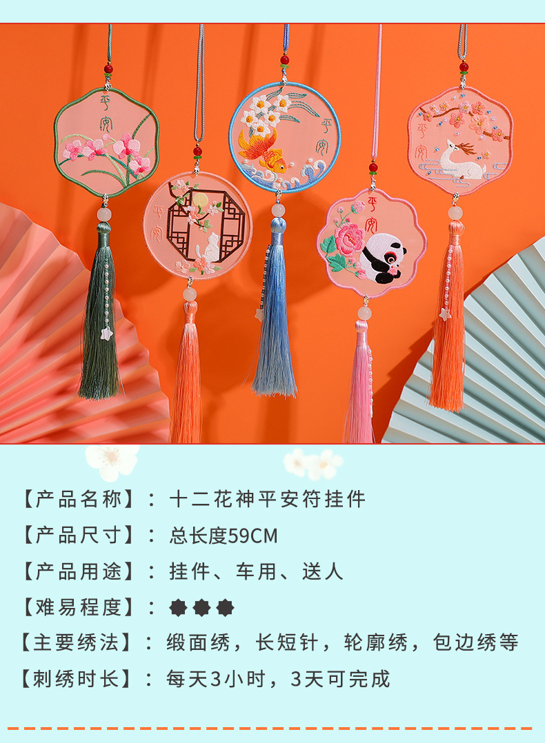 平安記号刺繍手作りdiy材料包車掛け携帯財布七夕祭り彼氏平安福香嚢