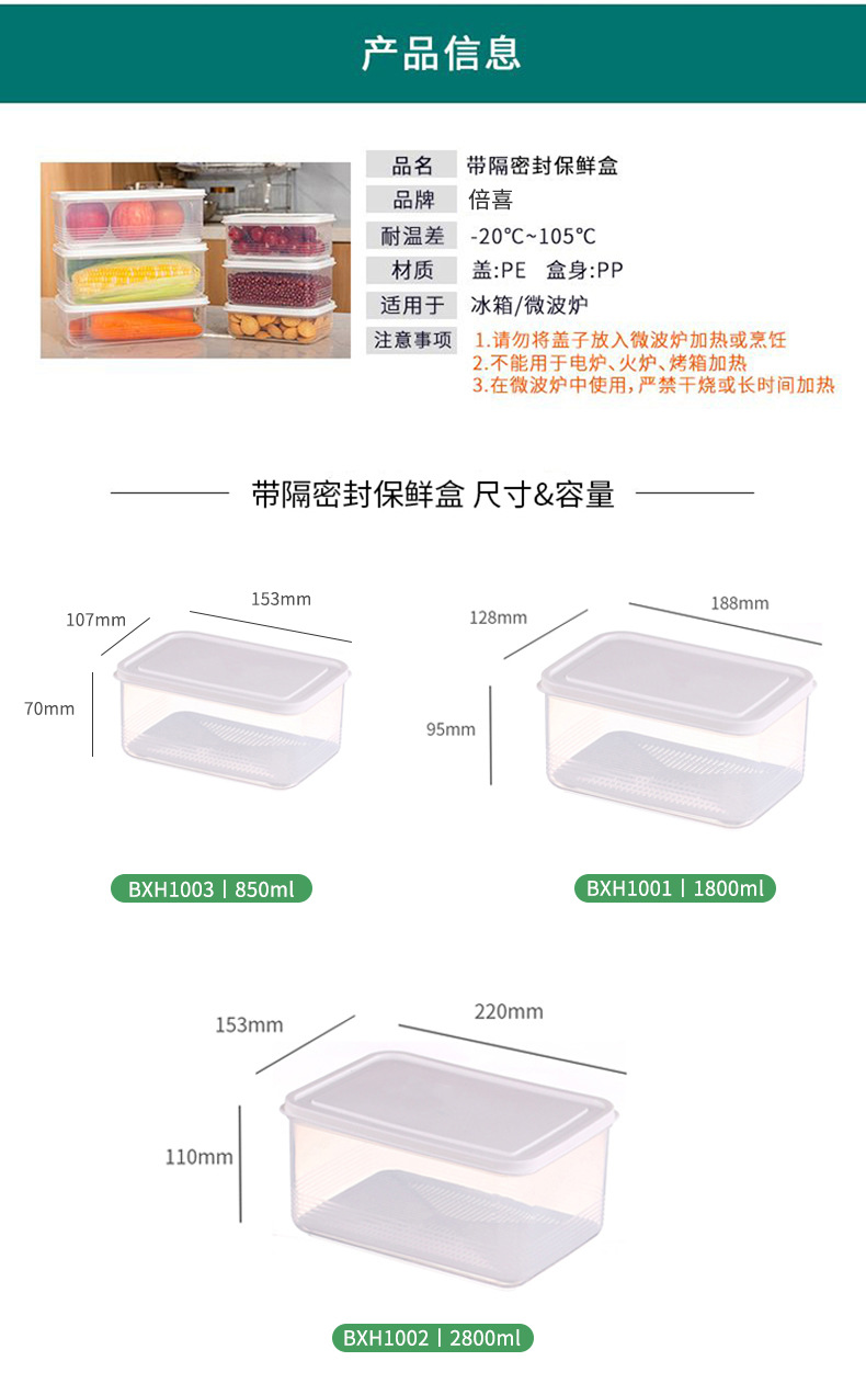 倍喜プラスチック鮮度保持箱食品級冷蔵庫収納箱プラスチック弁当箱五穀雑穀密封貯蔵タンク
