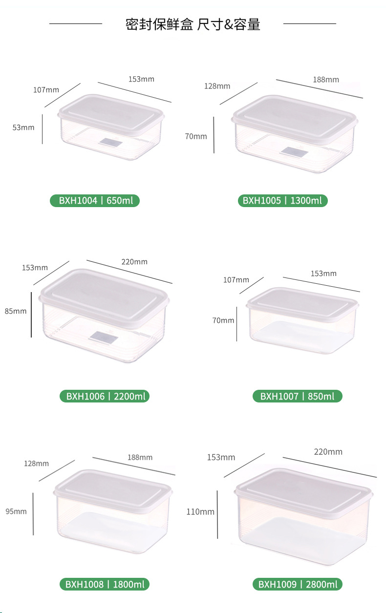 Beixi プラスチック野菜室食品グレードの冷蔵庫収納ボックスプラスチックランチボックス穀物密封された保存瓶