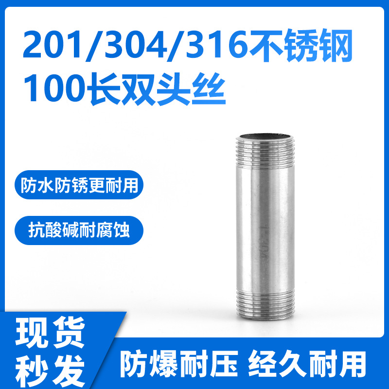 祥通純正品304ステンレス100長双頭糸1インチ-4インチ内外糸ねじ100mm