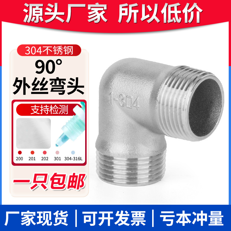 304ステンレス鋼両側雄ねじエルボ90度ステンレス鋼外ねじ等径異径エルボ4分6分1インチ