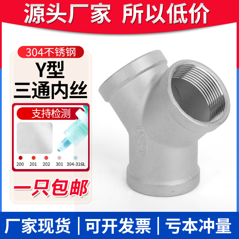 304ステンレス鋼y型内糸三方三叉三方y三方樹人三方4分6分1インチ2インチ