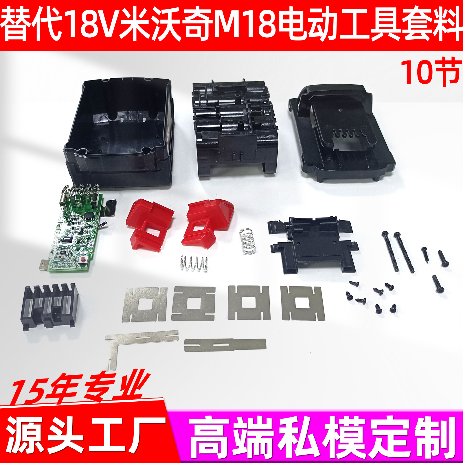 替代米沃奇M18工具电池套料18650美沃奇10心18V电池保护板胶壳