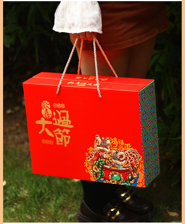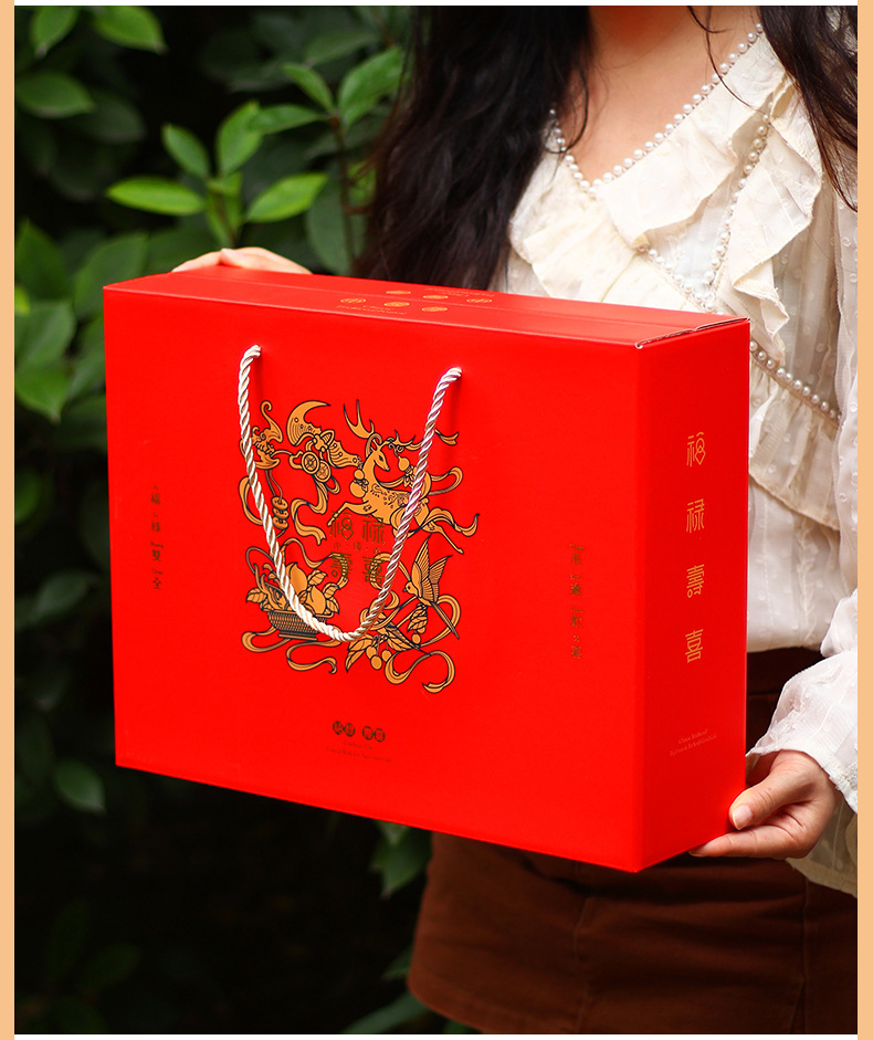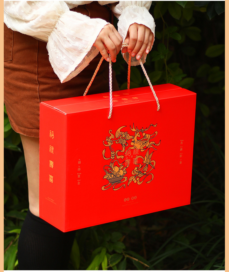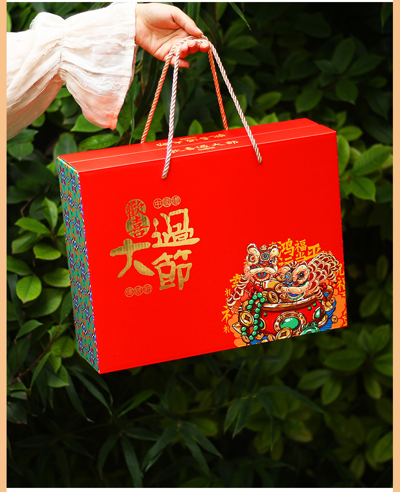 【祝日共通トランペット】年物持参ギフトボックス包装箱特産熟食スーツケース4/6斤赤緑