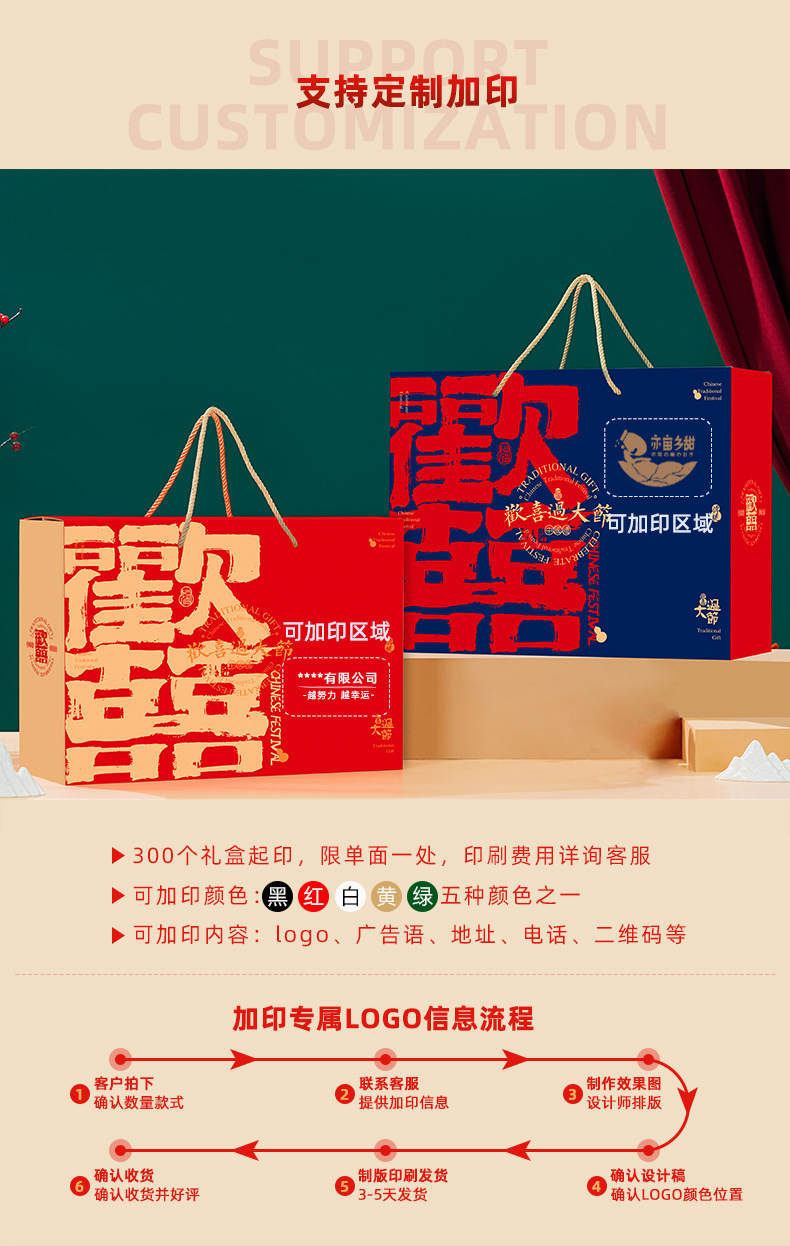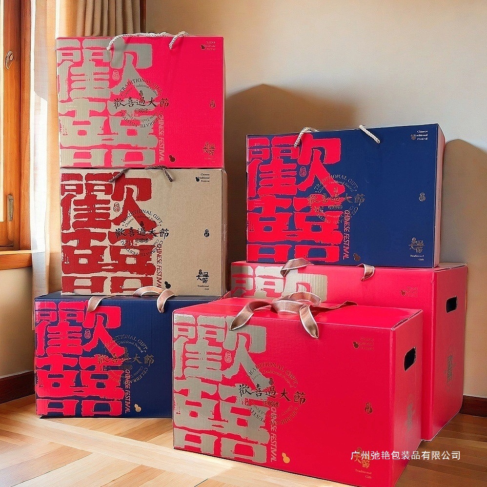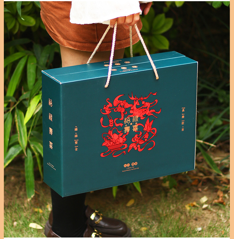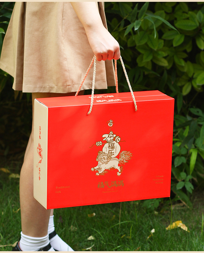 【祝日共通トランペット】年物持参ギフトボックス包装箱特産熟食スーツケース4/6斤赤緑