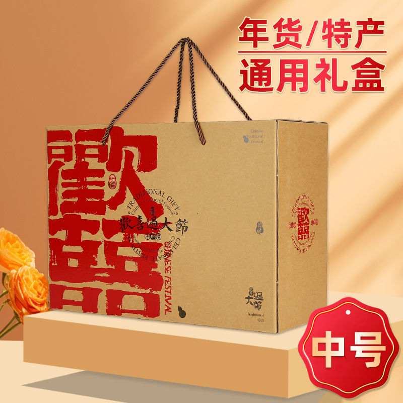 【歓喜クラフト紙中号】みんな大歓喜ギフト包装箱祝日お土産マントースーパーギフト箱