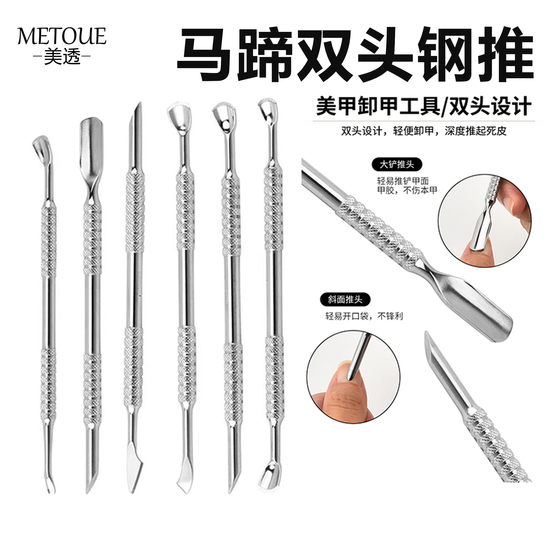 俄式双头马蹄钢推不锈钢斜口钢推前置处理去死皮推立面美甲工具