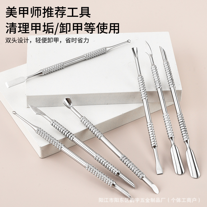 俄式不锈钢美甲钢推双头马蹄推日常清洁护理指甲去死皮专用工具