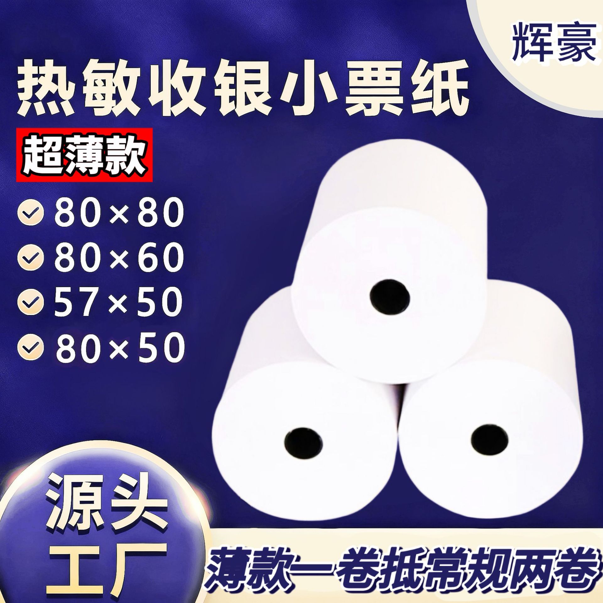 輝豪感熱レジ紙80x80熱感小票紙5750美団出前スーパープリンタ紙巻 * 58mm