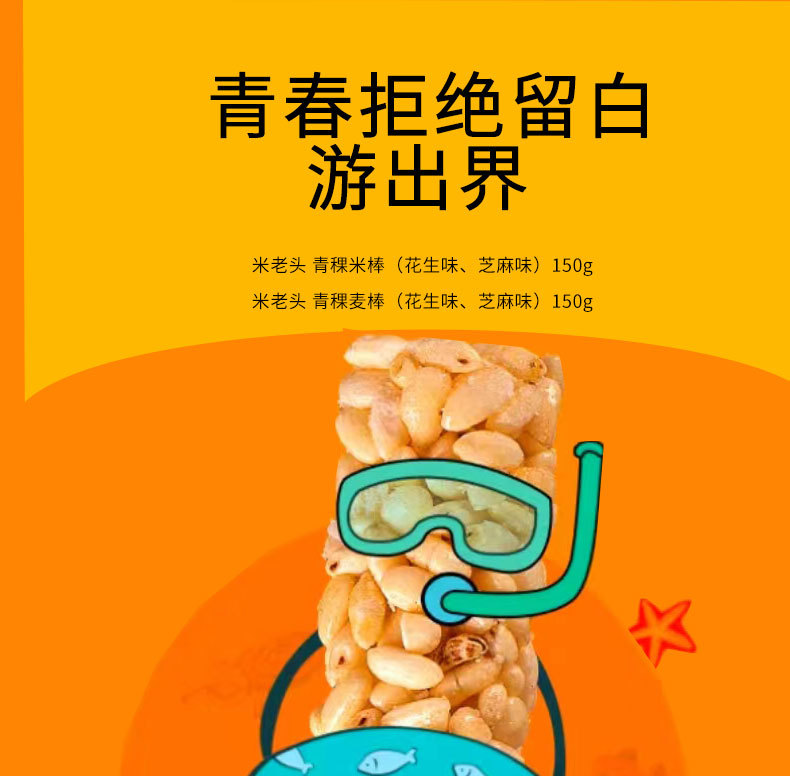 米老人青穂麦棒米棒150g袋詰めピーナッツ味ゴマ味膨化レジャースナック卸売り