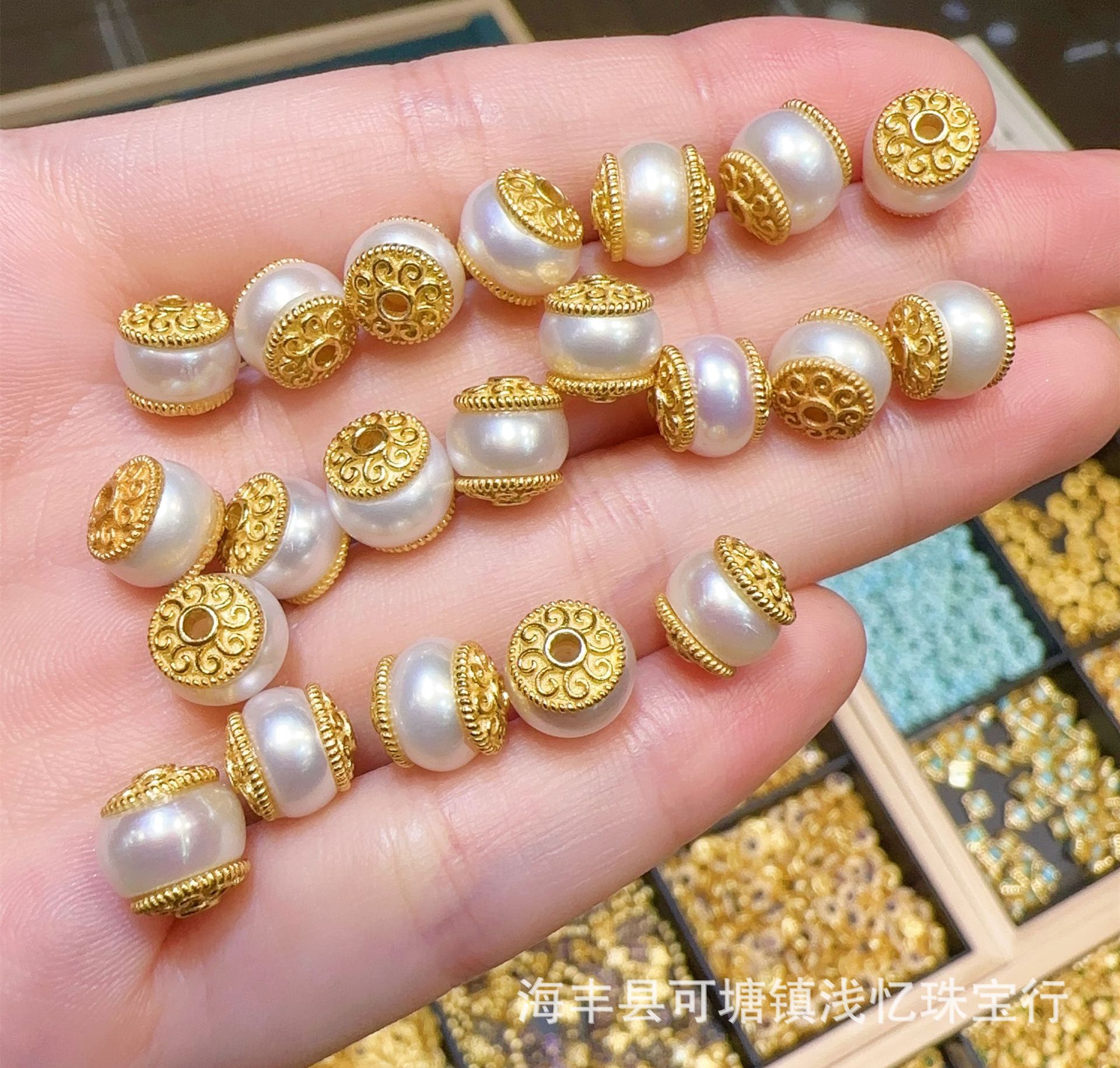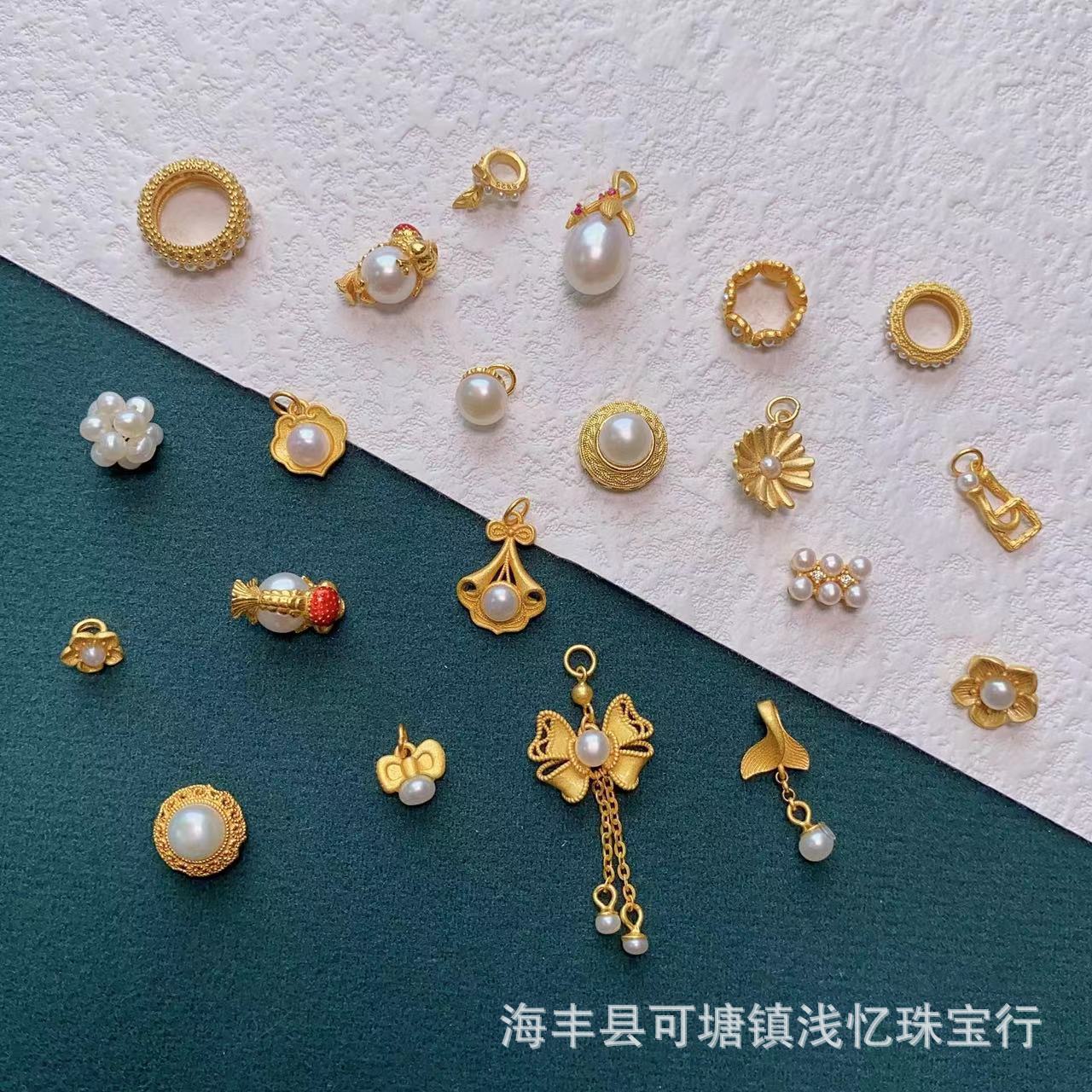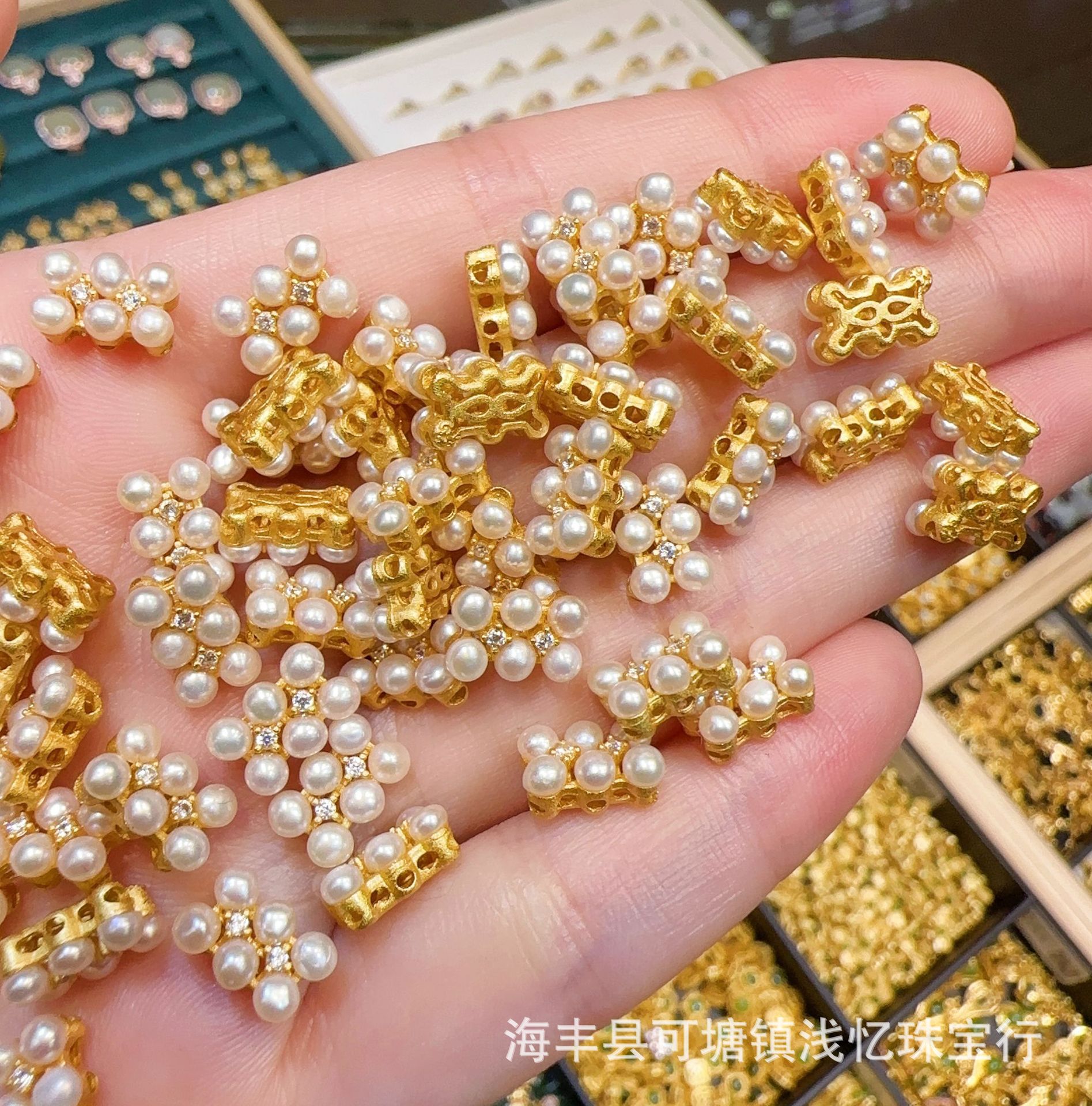 S925銀金メッキ真珠diy飾り花びら蝶ネクタイ如意走環隔珠滴真珠手串部品