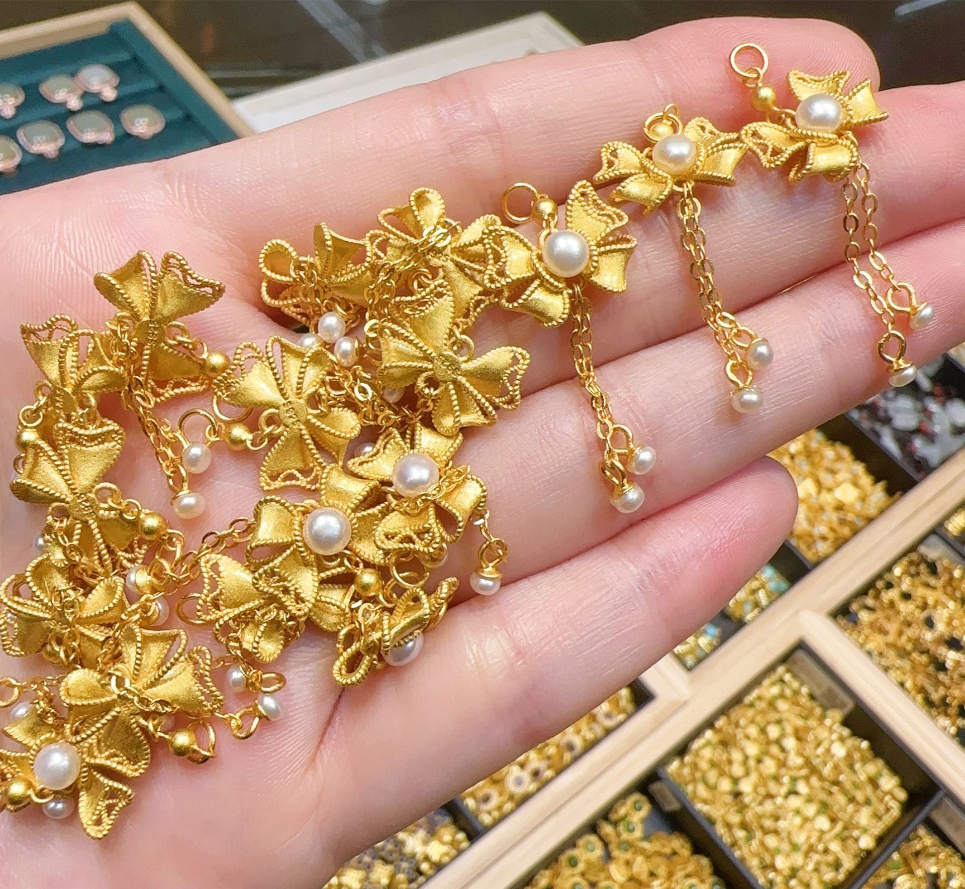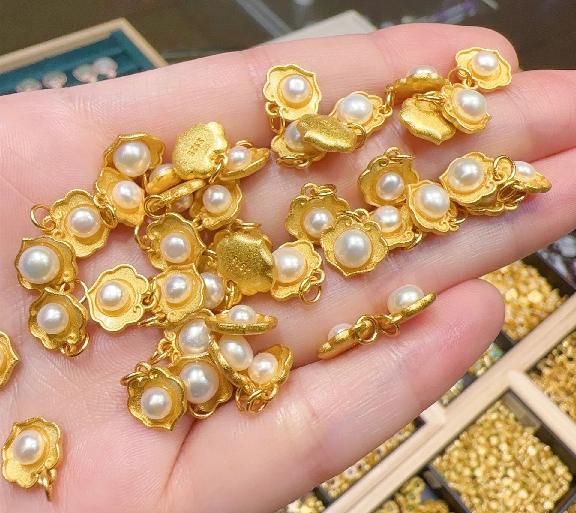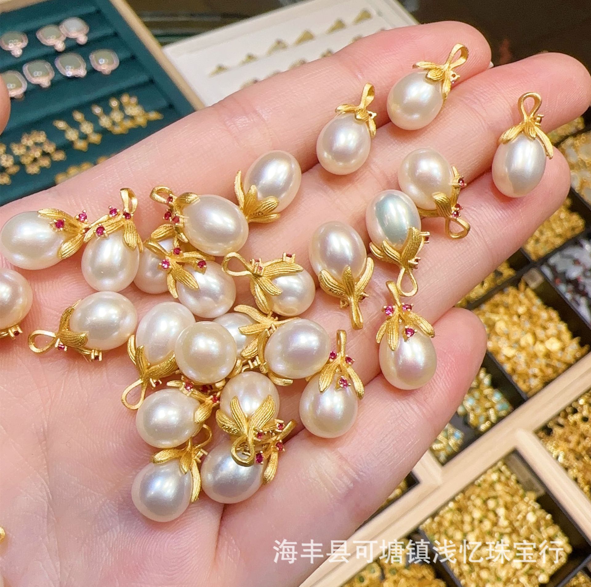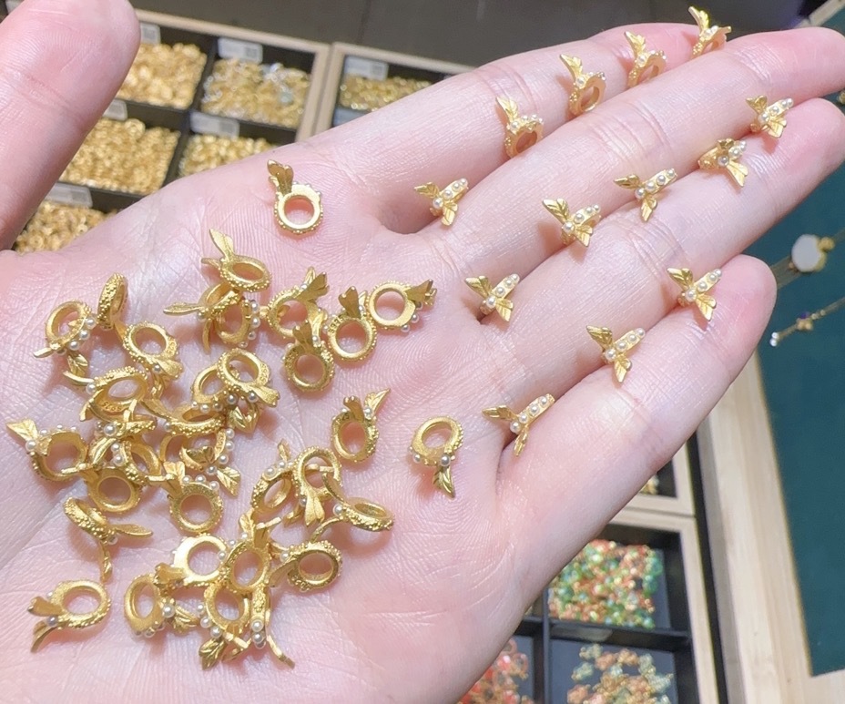 S925銀金メッキ真珠diy飾り花びら蝶ネクタイ如意走環隔珠滴真珠手串部品
