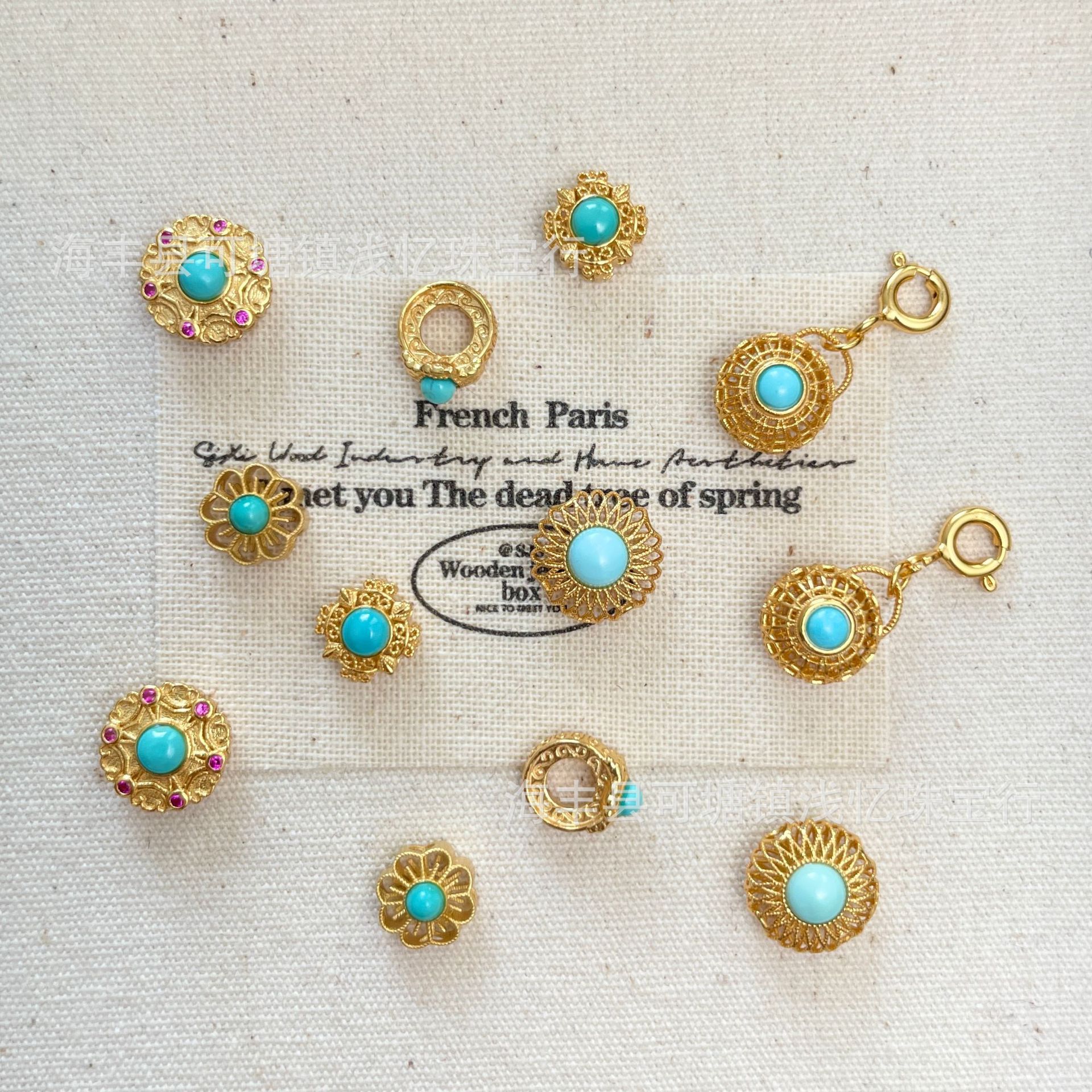S925银镀金 松石隔珠配件滴溜卡扣 diy小吊坠隔珠串珠材料