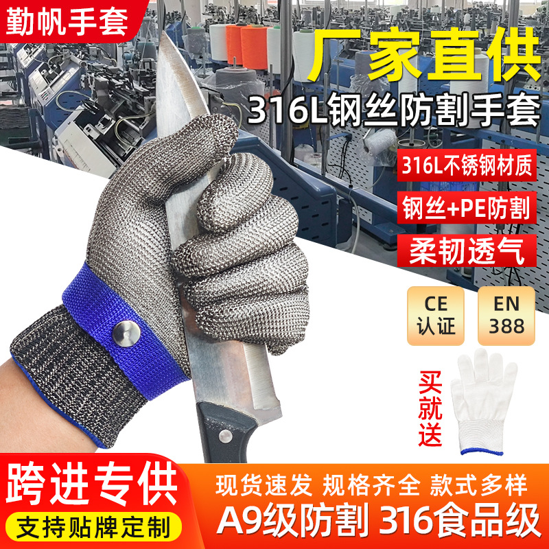 工場直送316鋼線耐切創手袋 切断・屠殺・魚処理用安全保護A9レベル耐切創手袋