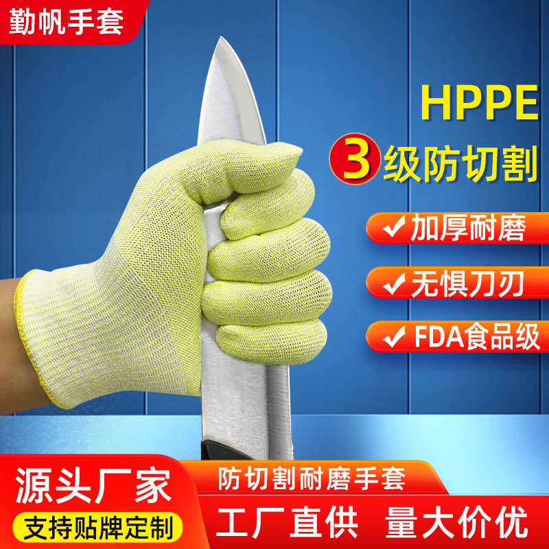 メーカー直販三級カット防止手袋HPPEは耐摩耗性滑り止め防護切断防止作業手袋を厚くしている