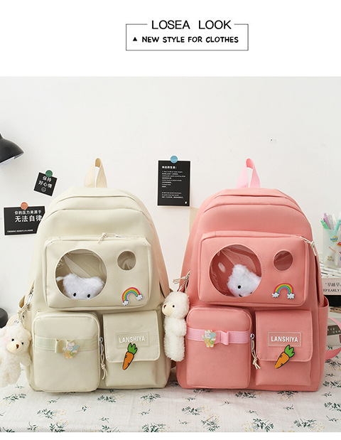 中学生・高校生向けのクロスボーダー透明痛バッグリュック、かわいい学生リュック、痛バッグ、カレッジ風大容量ランドセル女性用