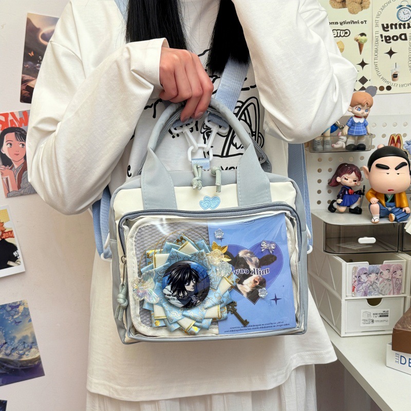 二次元クロスボディバッグ日本インカレッジスタイルポータブルショルダーバッグ穀物透明バーバッグ痛バッグベビーバッグ