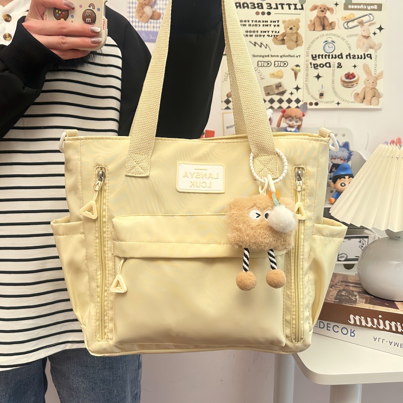 インクリーム シンプル 無地 万能 通勤 ショルダー トートバッグ 学生 大容量 ポータブル クラス クロスボディバッグ