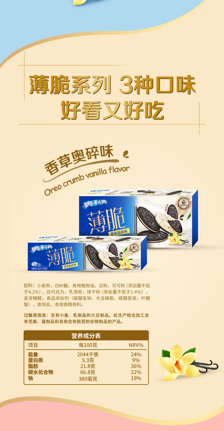奥.利奥薄脆夹心饼干95g香草奥碎抹茶甜品休闲零食品送女友小吃