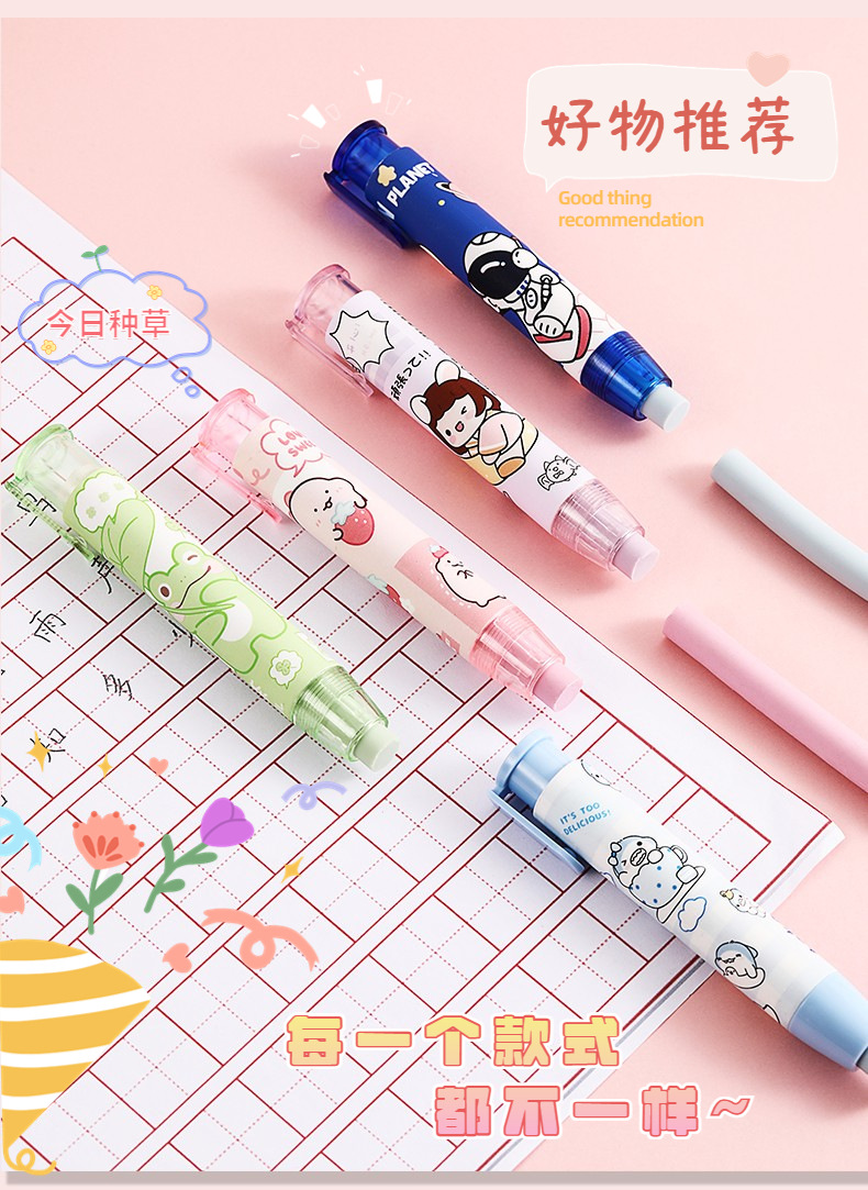 漫画プレス消しゴム自動リフィル消しゴムペン型消しゴム交換可能なリフィル学生クリエイティブ文具