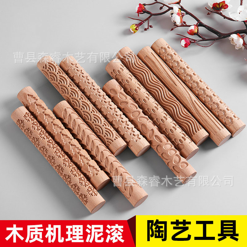 星晖陶芸工具大サイズ木質筋理泥ロール泥板プリント木棒エンボス棒木目ストレッチ泥杖