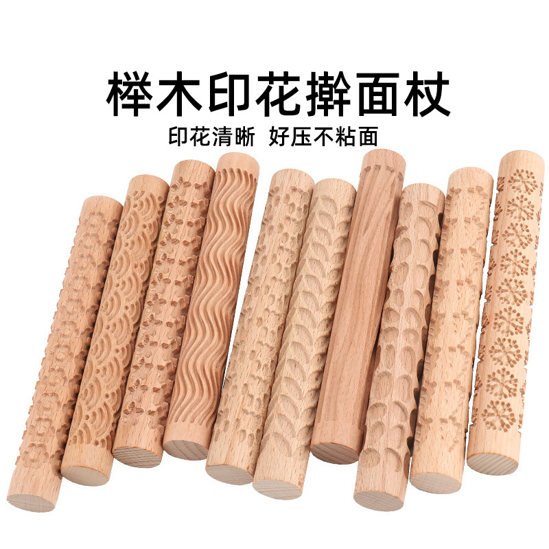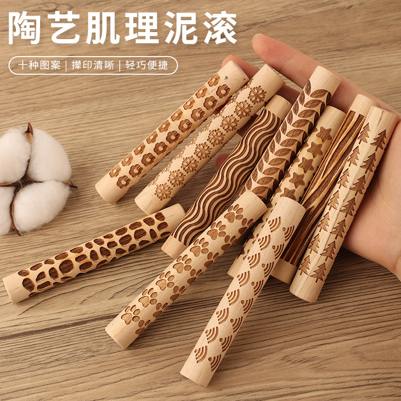 陶艺工具木质肌理棒泥滚压花纹擀泥杖陶泥手工DIY多种花纹雪花印
