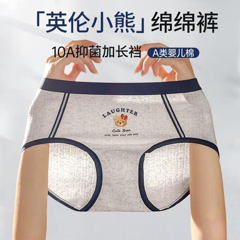 小熊内裤女士纯棉10A抗菌加长裆A类婴儿棉中腰卡通少女生三角短裤