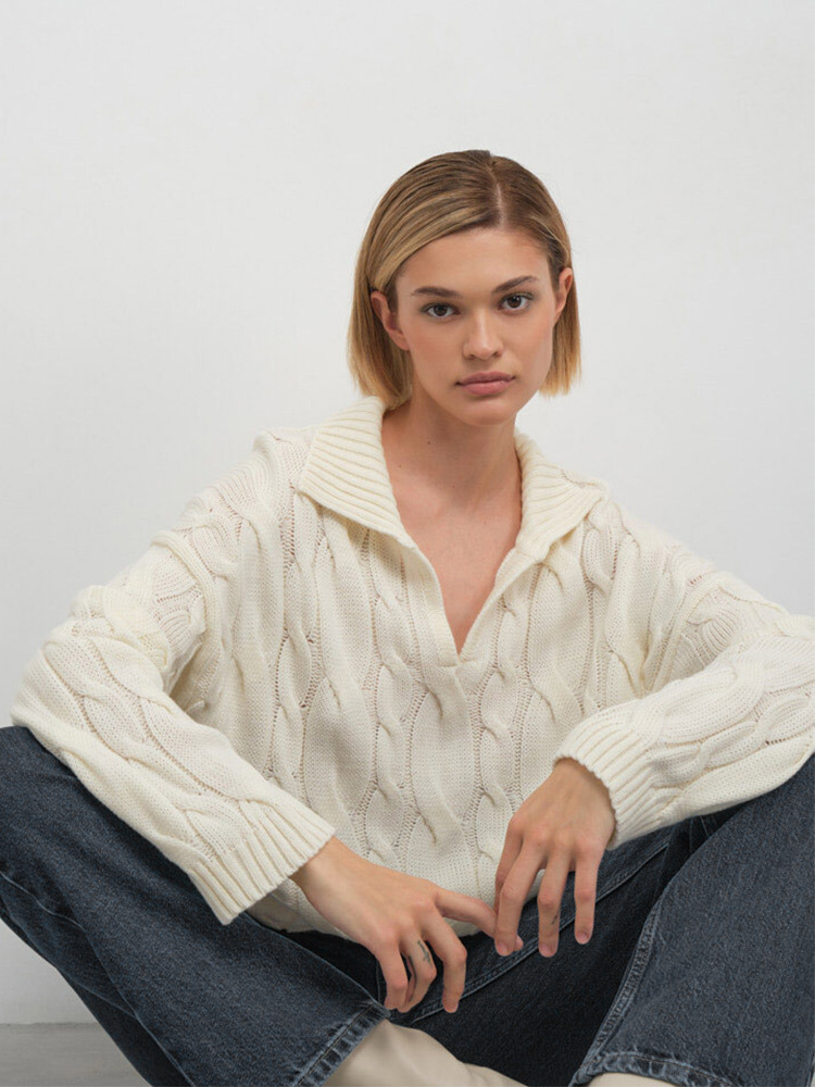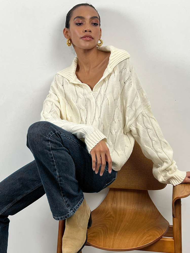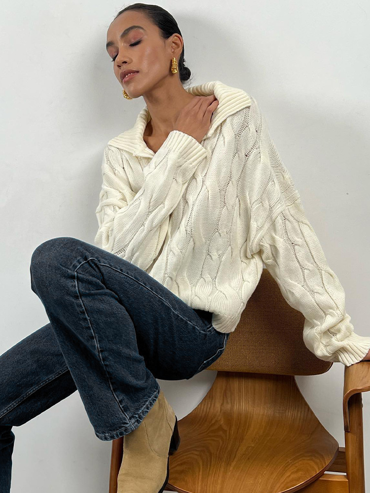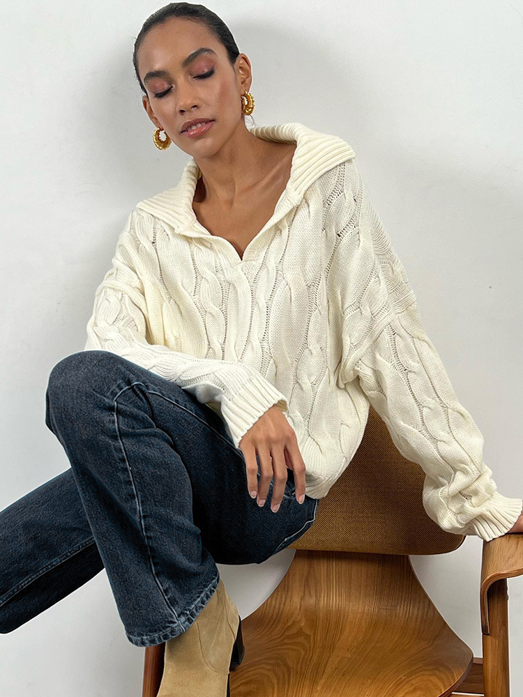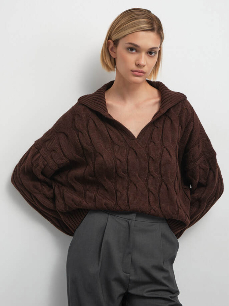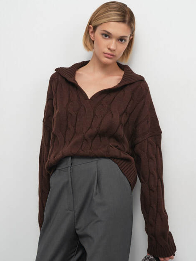 ゆったりとしたカジュアルニット2022秋冬の新型アマゾン欧米の婦人服の襟が厚くなっています。