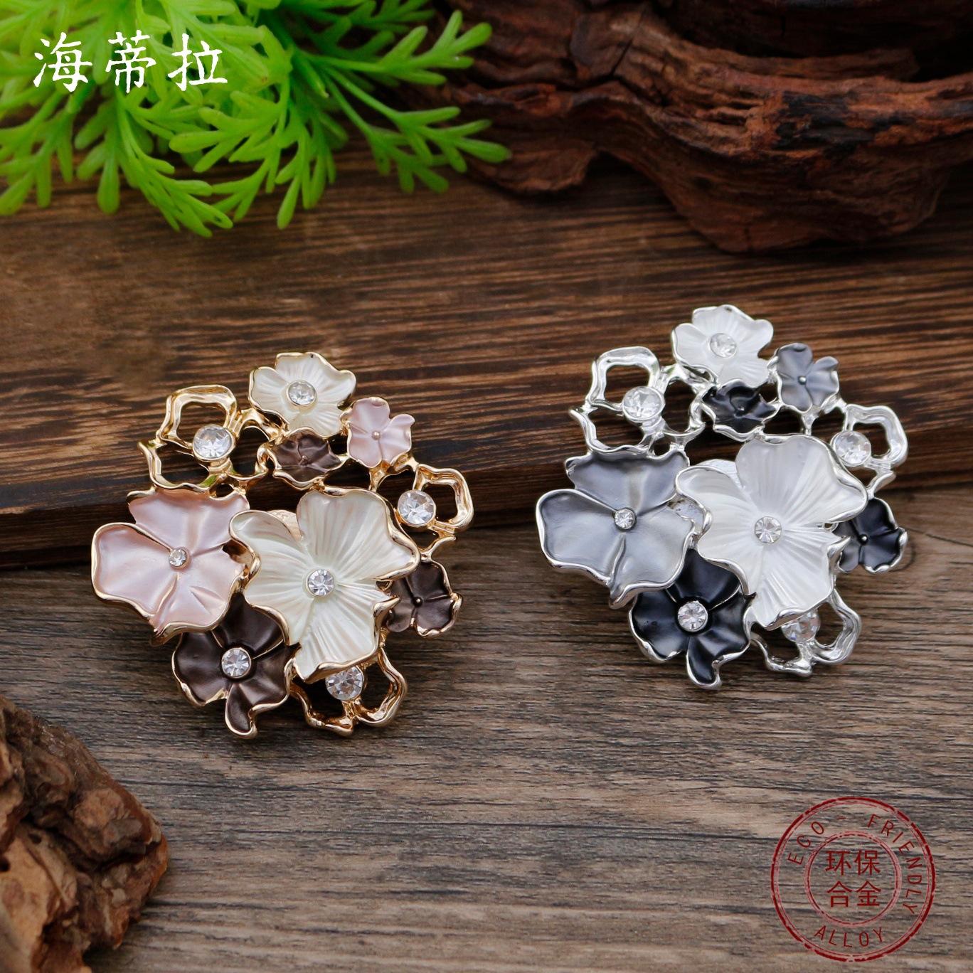 跨境新款珐琅彩镂空镶钻花朵磁吸胸针女士夸张高级感几何花朵胸花