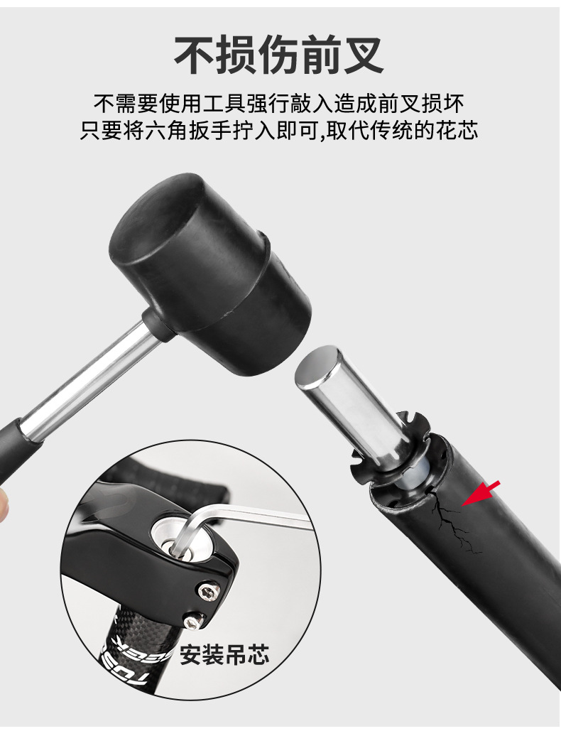 1.轻轻的收紧一点吊芯上面的内六角螺丝,直到膨胀的很接近前叉的内径