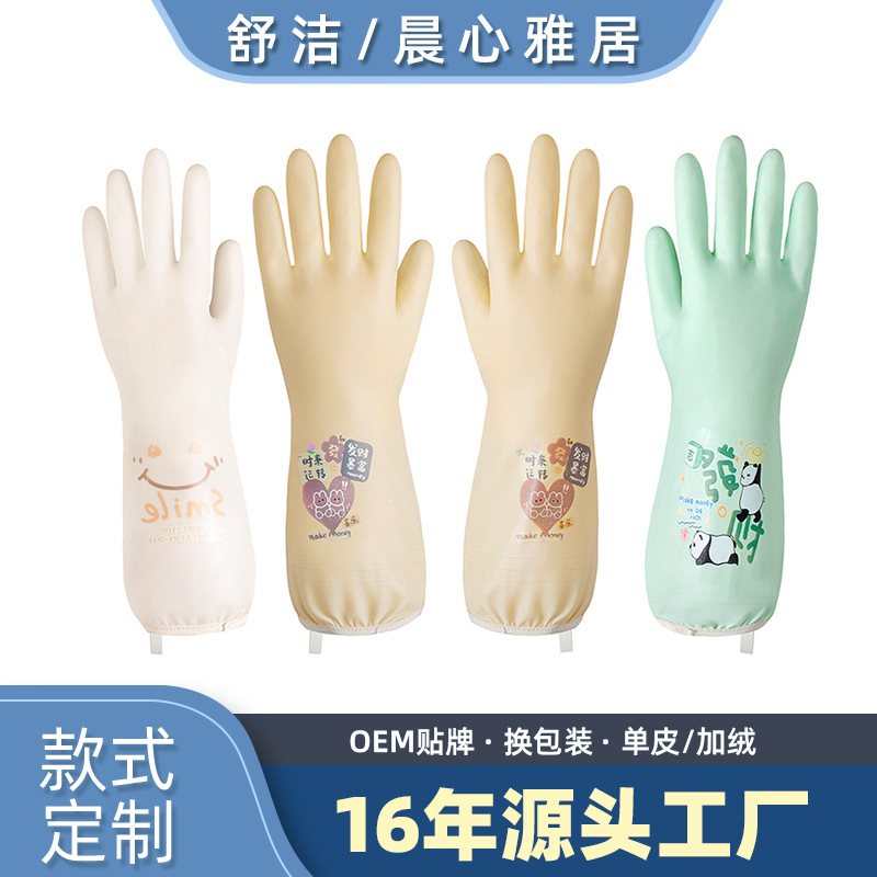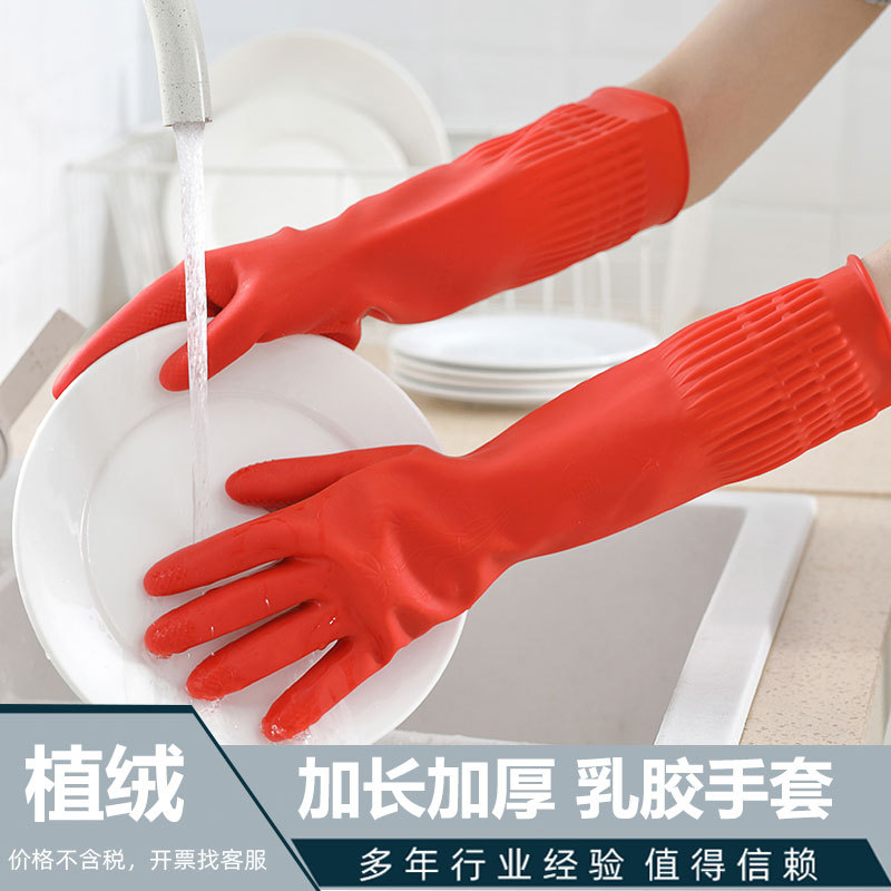 家庭用清潔ゴム手袋耐久性防水洗濯延長植毛家事皿洗い手袋ラテックス皮卸売り