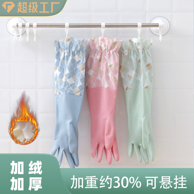 ベルベット食器洗い手袋家事卸売冬耐久性のあるクリーニング家庭用洗濯ゴム革防水肥厚暖かい