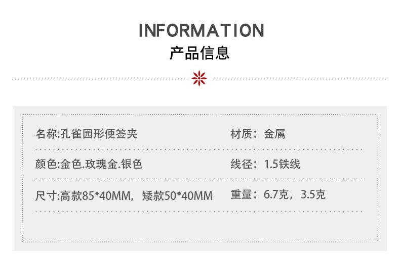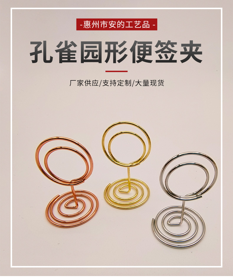 50/85/120/220mm孔雀圆心形名片夹便签夹 桌面卡片留言夹跨境现货